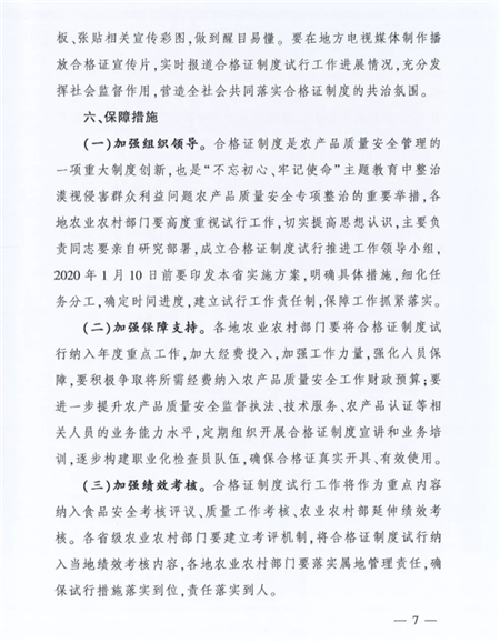 推行農(nóng)產(chǎn)品合格證既是落實(shí)生產(chǎn)經(jīng)營(yíng)主體責(zé)任的迫切需要,也是構(gòu)建農(nóng)產(chǎn)品質(zhì)量*長(zhǎng)效監(jiān)管機(jī)制的現(xiàn)實(shí)需求,更是落實(shí)《農(nóng)產(chǎn)品質(zhì)量*法》的必然選擇,對(duì)于促進(jìn)農(nóng)業(yè)產(chǎn)業(yè)健康發(fā)展、確保農(nóng)產(chǎn)品消費(fèi)*、保證人們的身體健康*具有重大的意義。